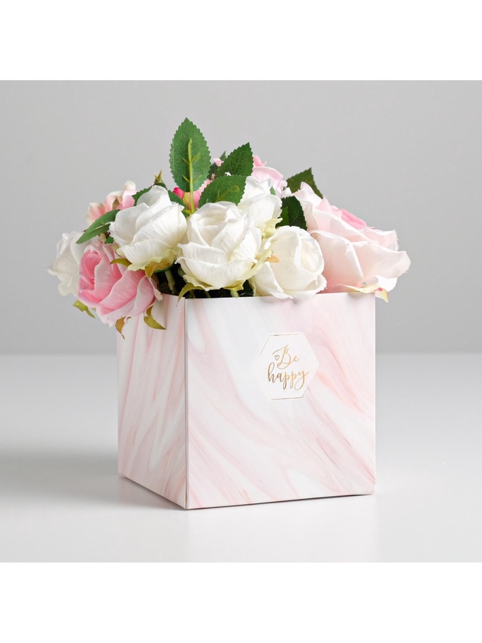 Коробка подарочная для цветов с пластиковой крышкой, упаковка, «Be happy», 12 х 12 х 12 см — Характеристики