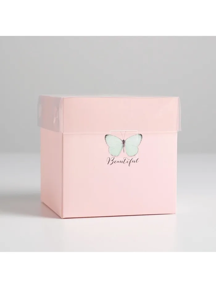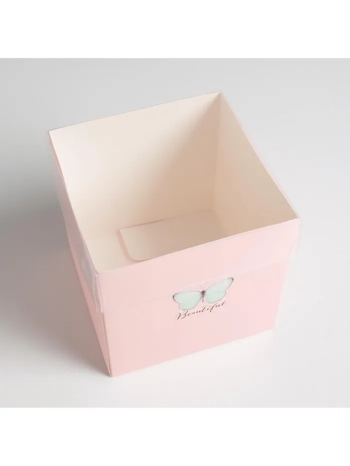 Коробка подарочная для цветов с пластиковой крышкой, упаковка, Beautiful, 12 х 12 х 12 см — Характеристики