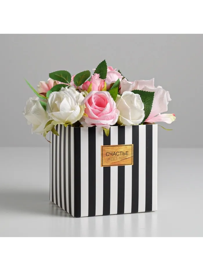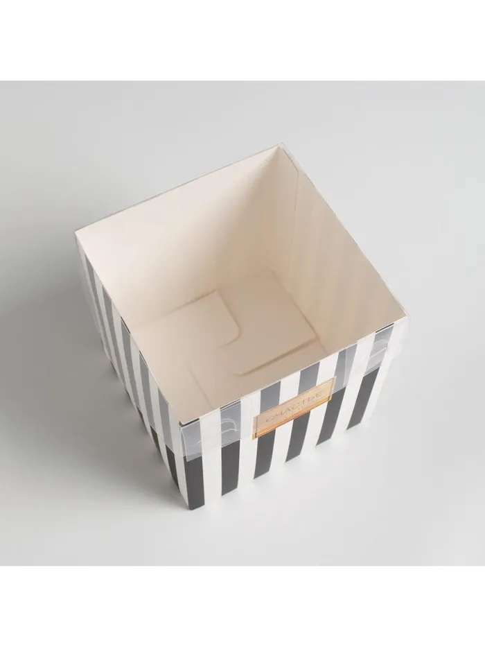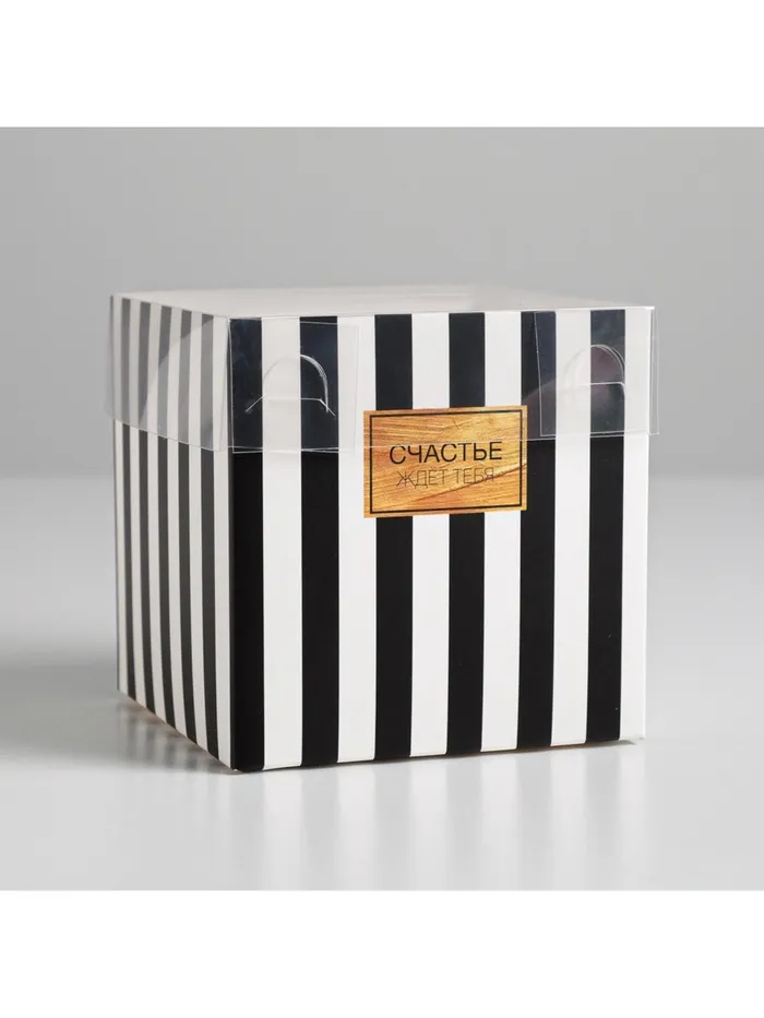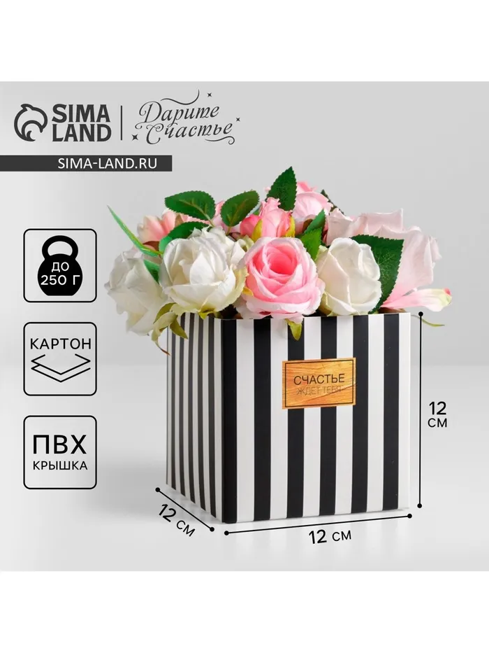 Коробка подарочная для цветов с пластиковой крышкой, упаковка, «Счастье ждёт тебя», 12 х 12 х 12 см — Характеристики