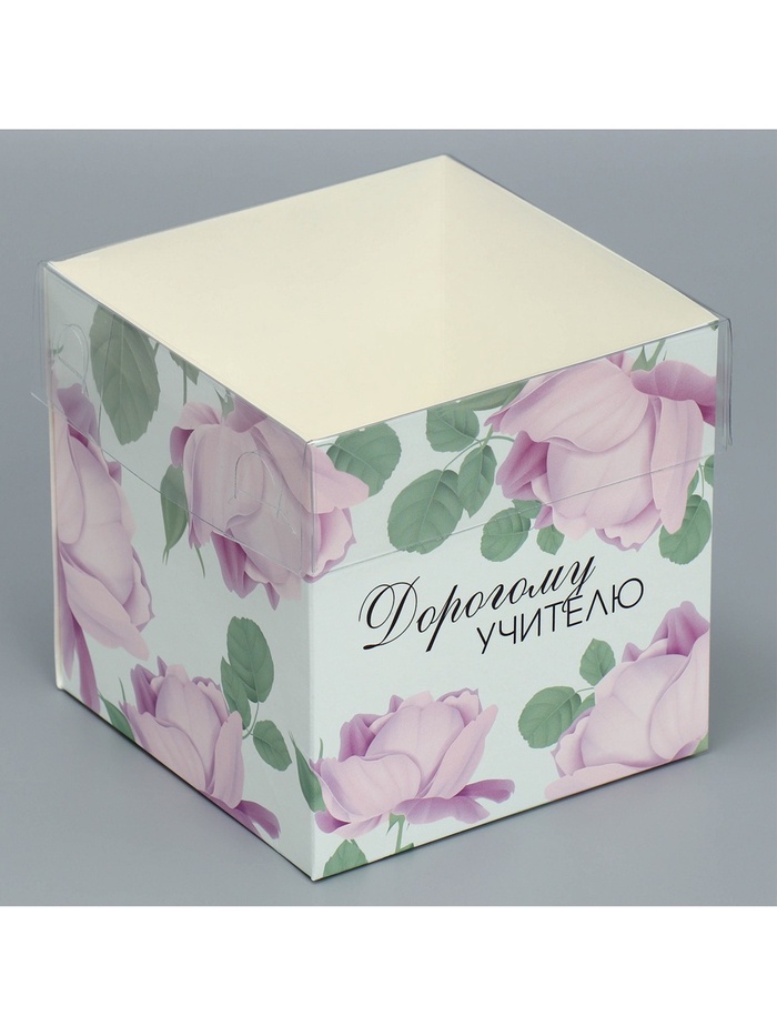 Коробка подарочная для цветов с PVC крышкой, упаковка, «Учителю», 12 х 12 х 12 см — Характеристики