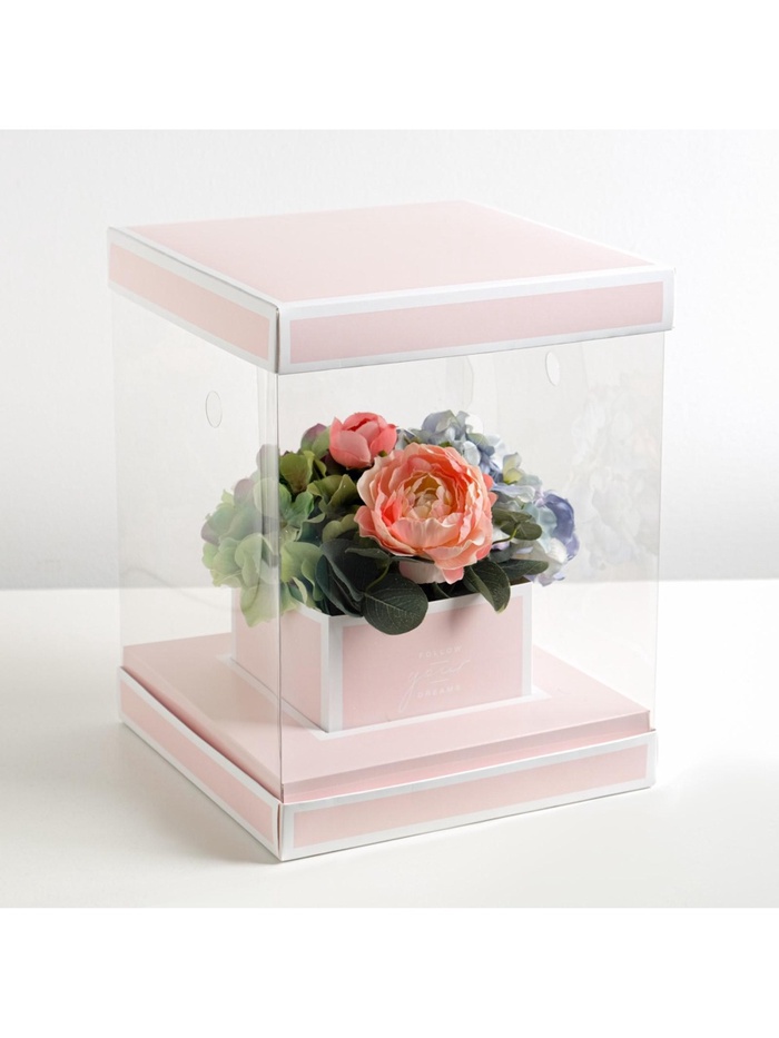 Коробка подарочная для цветов с вазой и пластиковыми окнами складная, упаковка, Follow Your Dreams, 23×30×23 см — Характеристики