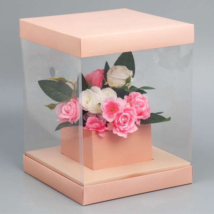 Коробка подарочная для цветов с вазой и пластиковыми окнами складная, упаковка, «Персик», 23×30×23 см — Характеристики
