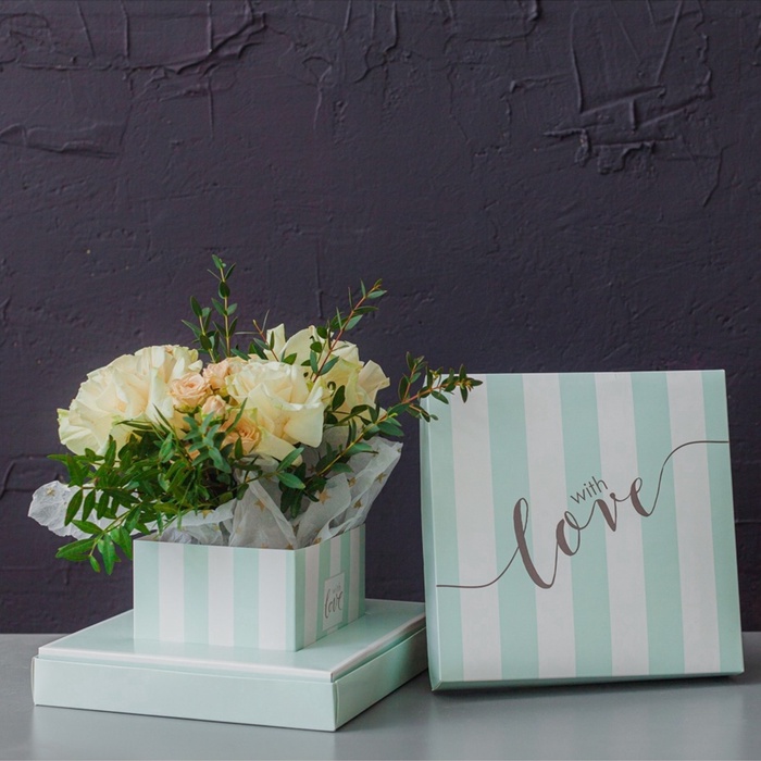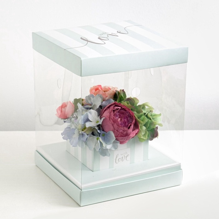Коробка подарочная для цветов с вазой и пластиковыми окнами складная, упаковка, With love, 23×30×23 см — Характеристики