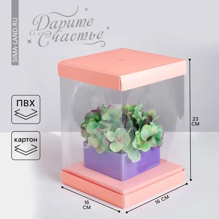 Коробка подарочная для цветов с вазой и PVC окнами складная, упаковка, «С Любовью», 16 х 23 х 16 см — Характеристики