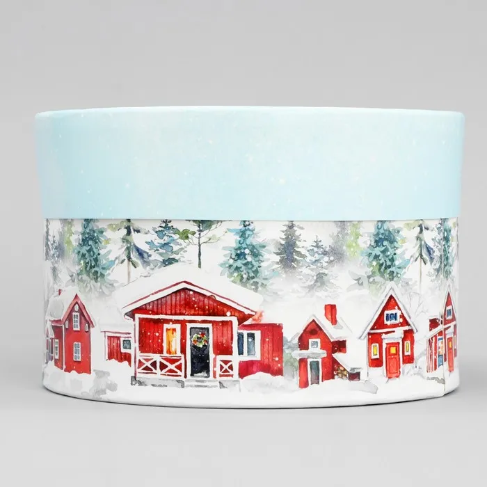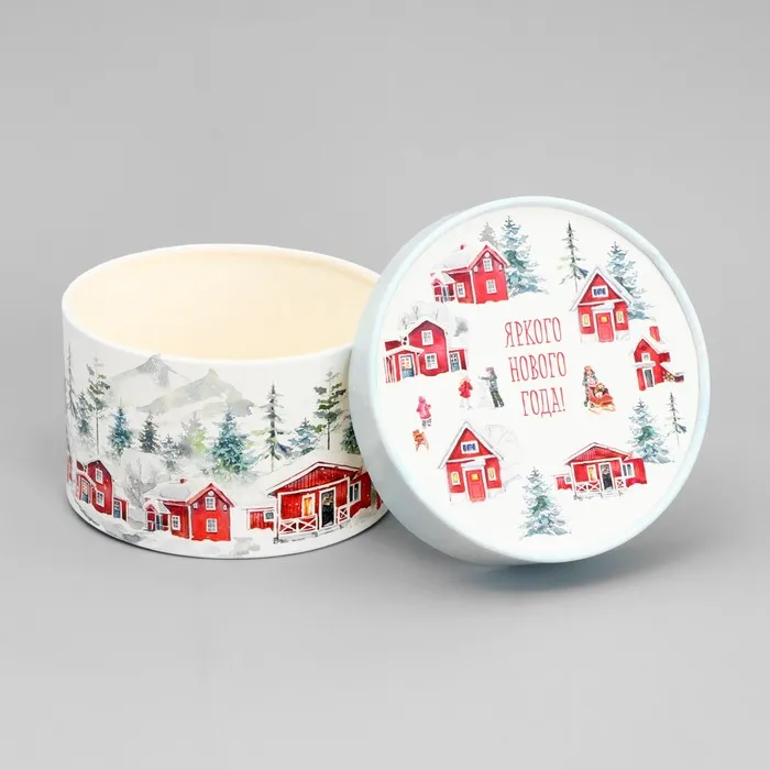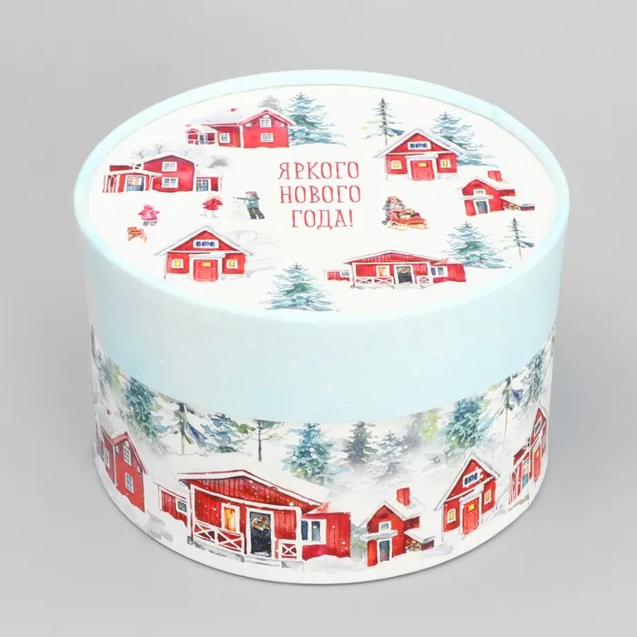Круглая подарочная коробка «Снегири», 14 х 16 см, Новый год