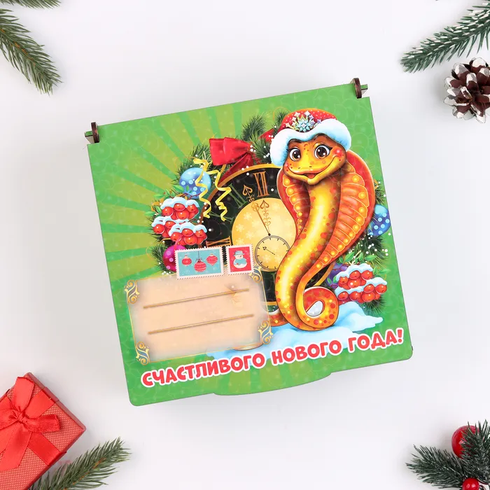 Коробка подарочная «Кобра. Счастливого нового года», упаковка для конфет, 18.5×18×10 см, зелёная — Характеристики