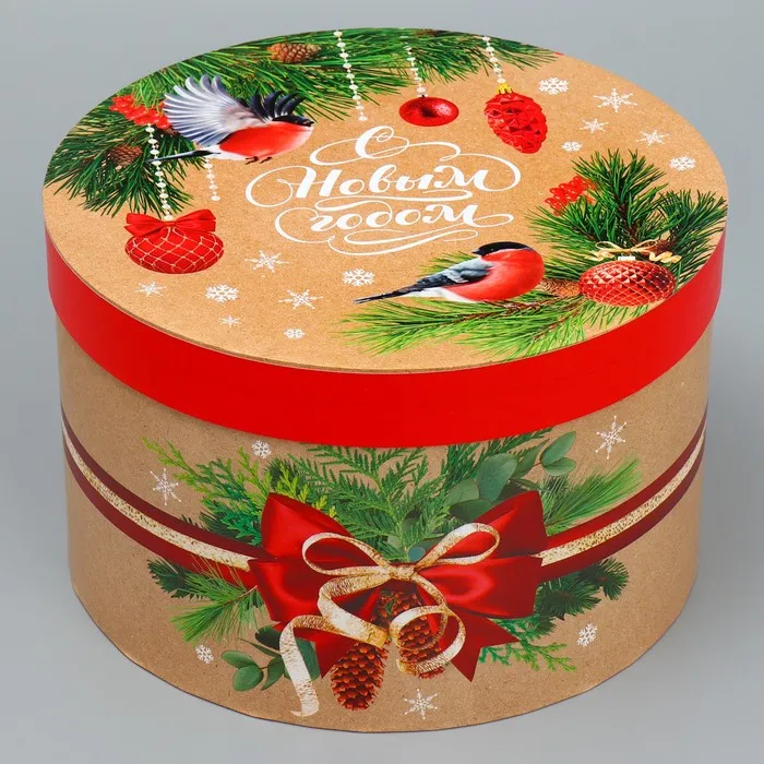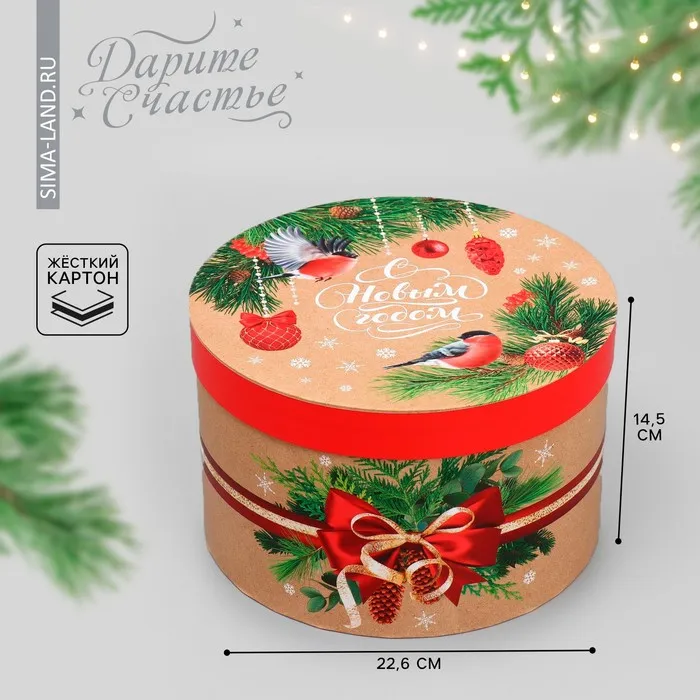 Коробка подарочная круглая «Новогодняя ботаника», 14.5 х 22.6 см — Характеристики