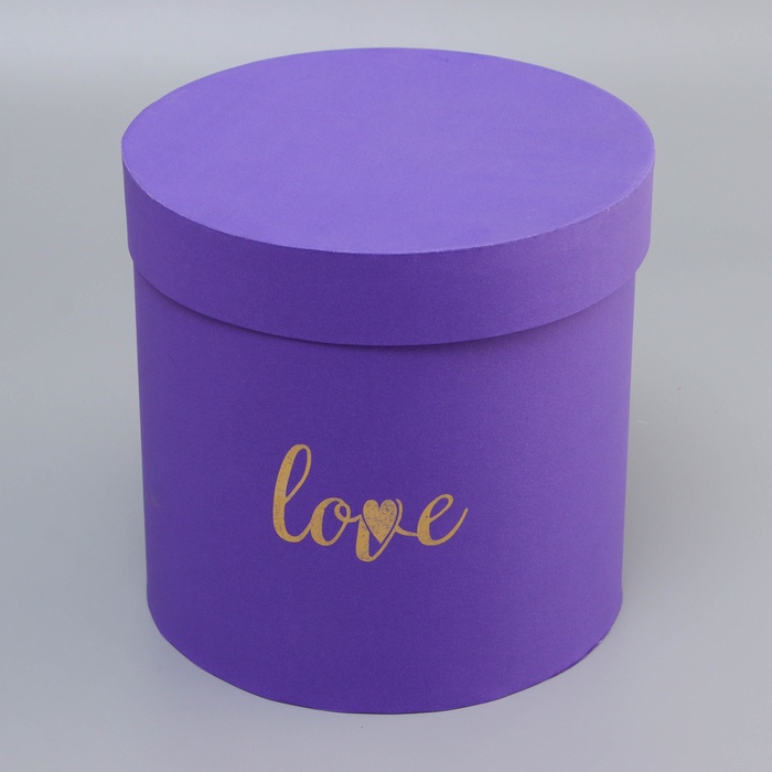 Коробка подарочная круглая, с тиснением "Love" фиолетовая 21×21×21 см — Характеристики