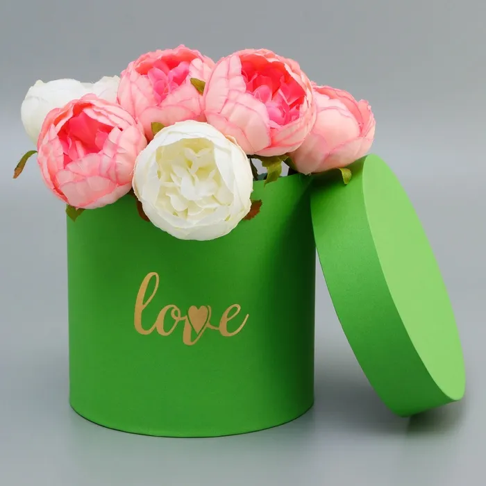 Коробка подарочная, круглая, с тиснением Love, салатовая,18×18×18 см — Характеристики