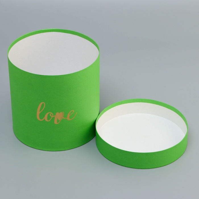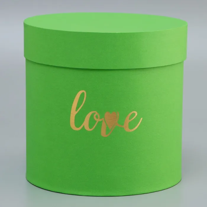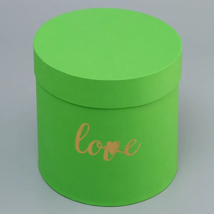 Коробка подарочная, круглая, с тиснением Love, салатовая,18×18×18 см