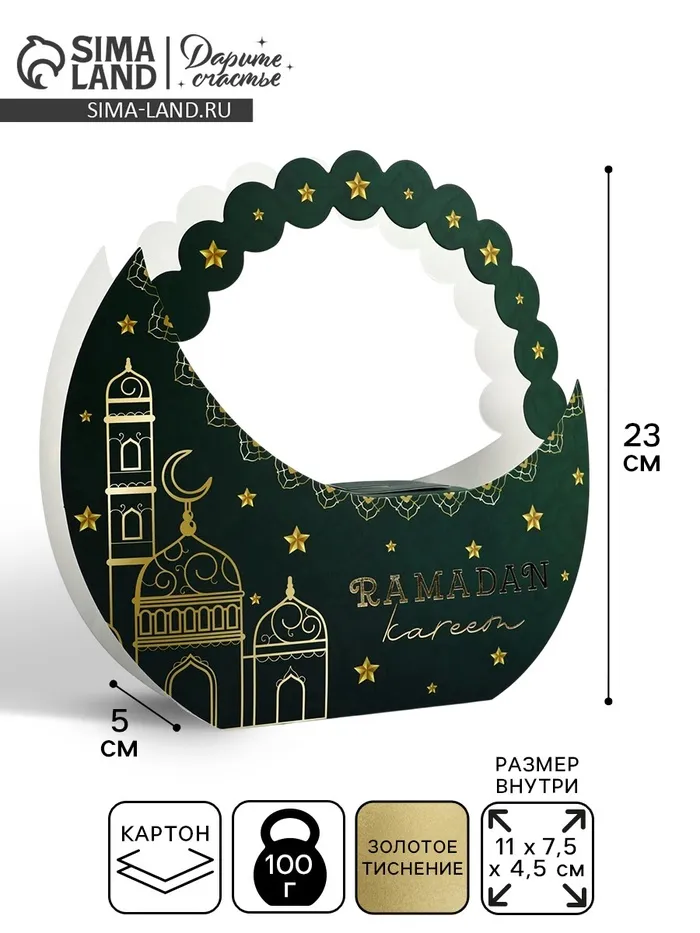 Коробка подарочная на Рамадан, Ramadan kareem, тиснение, 23 х 21 х 5 см — Характеристики