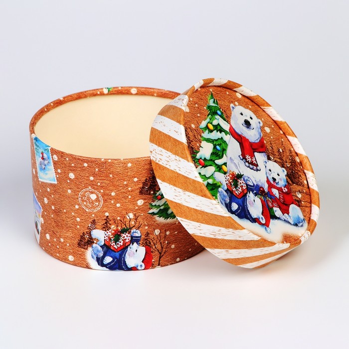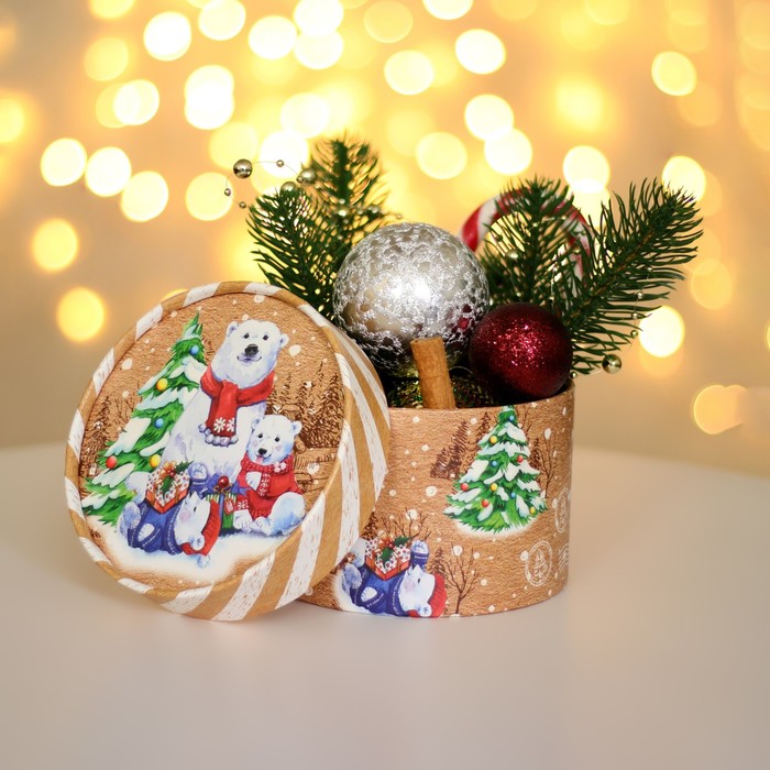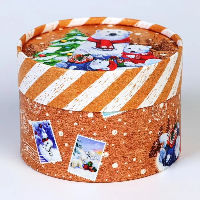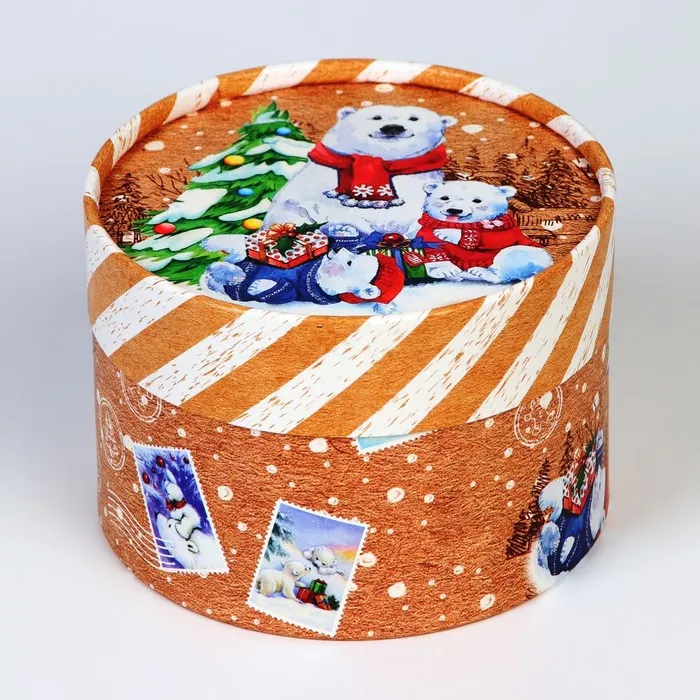 Коробка подарочная новогодняя для макарун тубус без окна «Мишки», 12×8 см — Характеристики