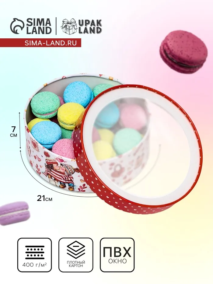 Коробка подарочная новогодняя для макарун тубус с окном « 14 февраля » 21×21×7 см — Характеристики