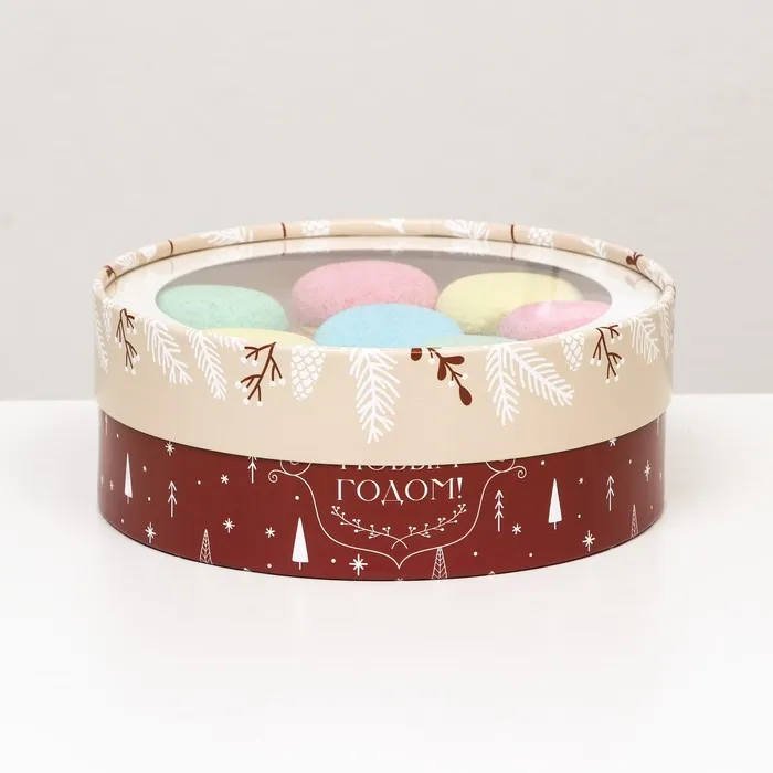 Элегантная коробка для макарун в тубусе с окном - идеальное сочетание стиля и внимания к деталям для вашего новогоднего подарка. Изготовленная из прочного картона, эта коробка не только сохраняет целостность содержимого, но и подчеркивает важность момента. Оригинальный дизайн придает ей уникальность, а прозрачное окно позволяет заглянуть внутрь, создавая загадочное предвкушение.