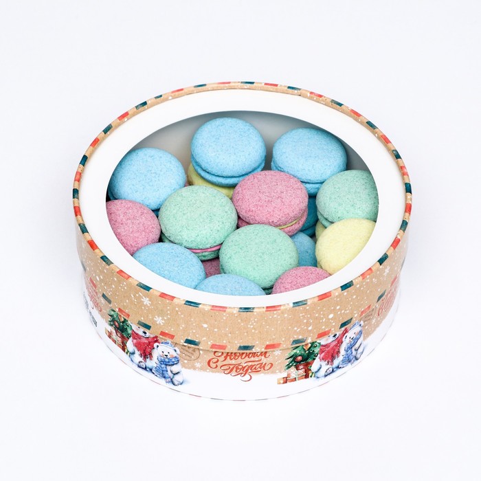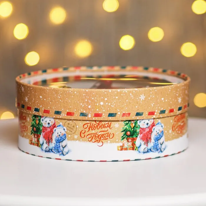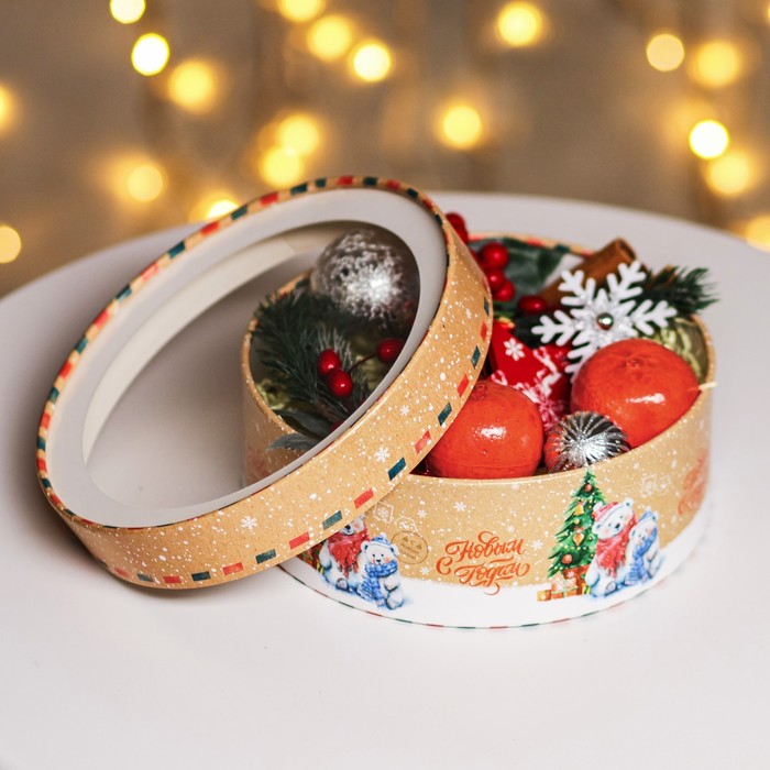 Коробка подарочная новогодняя для макарун тубус с окном «Новый год у Ёлки», 20.5×20.5×7 см — Характеристики