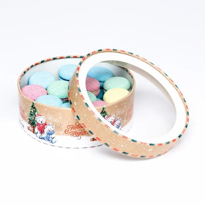 Элегантная коробка для макарун в тубусе с окном - идеальное сочетание стиля и внимания к деталям для вашего новогоднего подарка. Изготовленная из прочного картона, эта коробка не только сохраняет целостность содержимого, но и подчеркивает важность момента. Оригинальный дизайн придает ей уникальность, а прозрачное окно позволяет заглянуть внутрь, создавая загадочное предвкушение.