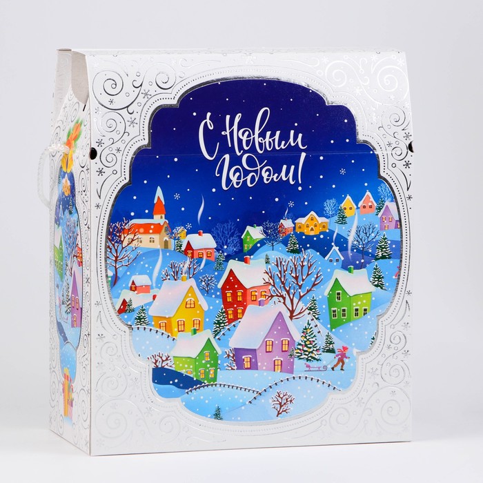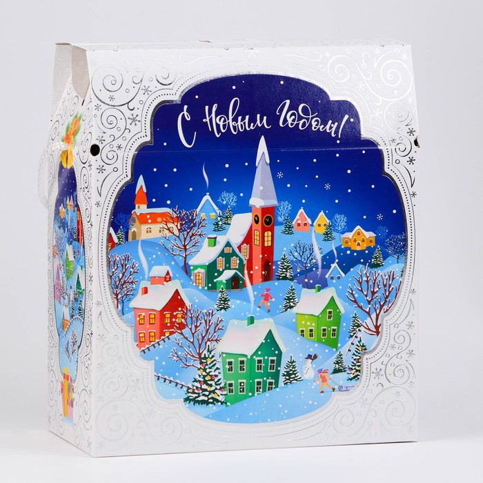 Коробка подарочная новогодняя «Городок» 21.5×25.6×11 см