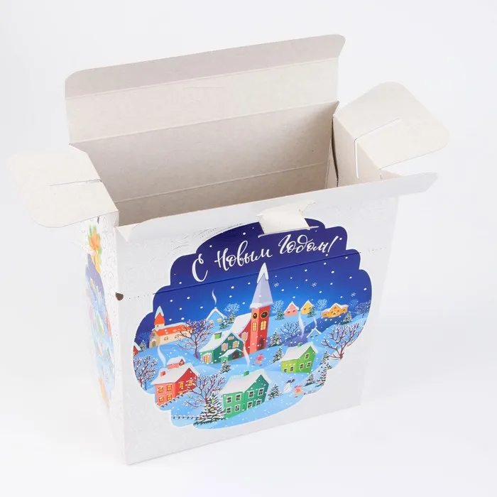 Коробка подарочная новогодняя «Городок» 21.5×25.6×11 см — Характеристики