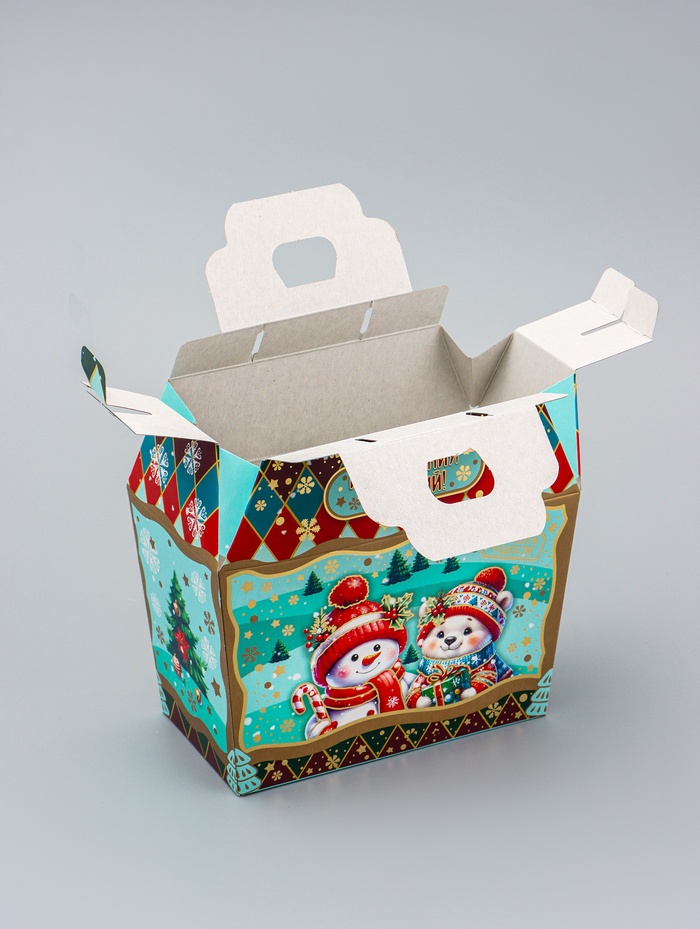 • Качественные материалы: Плотный картон с цветным покрытием сохраняет форму и защищает содержимое. Упаковка выглядит нарядно и сохраняет презентабельный вид.
