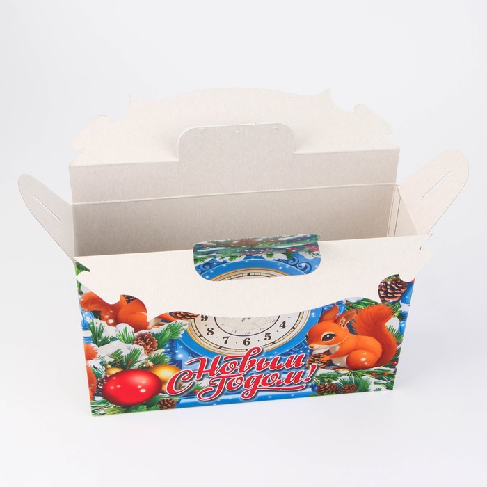Коробка выполнена из качественных материалов, которые обеспечивают сохранность содержимого. Она имеет яркий и красочный дизайн, который отражает атмосферу Нового года.