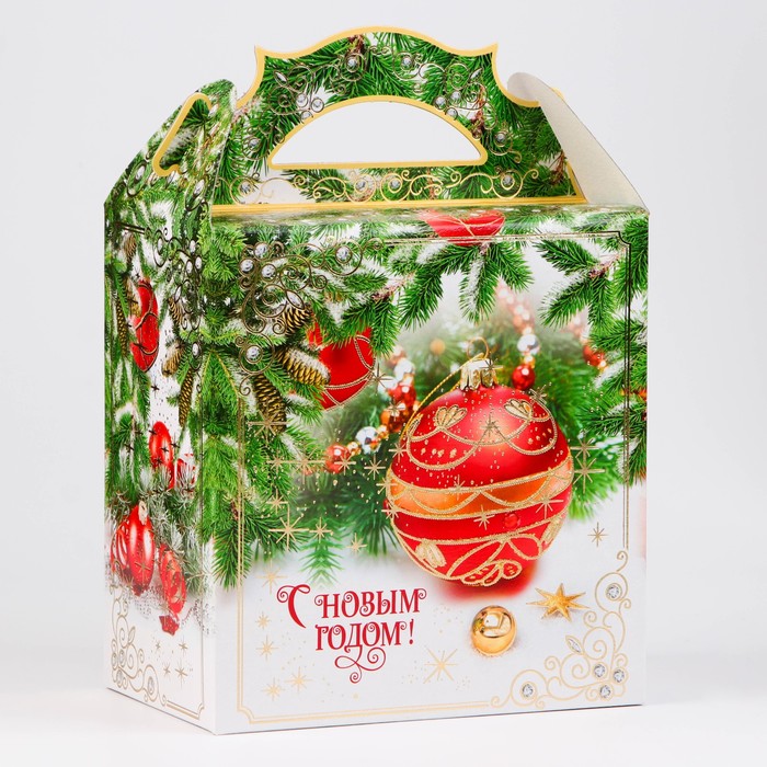 Коробка подарочная новогодняя Ларец «Елочные игрушки» 18.2×11.5×26 см