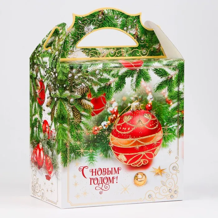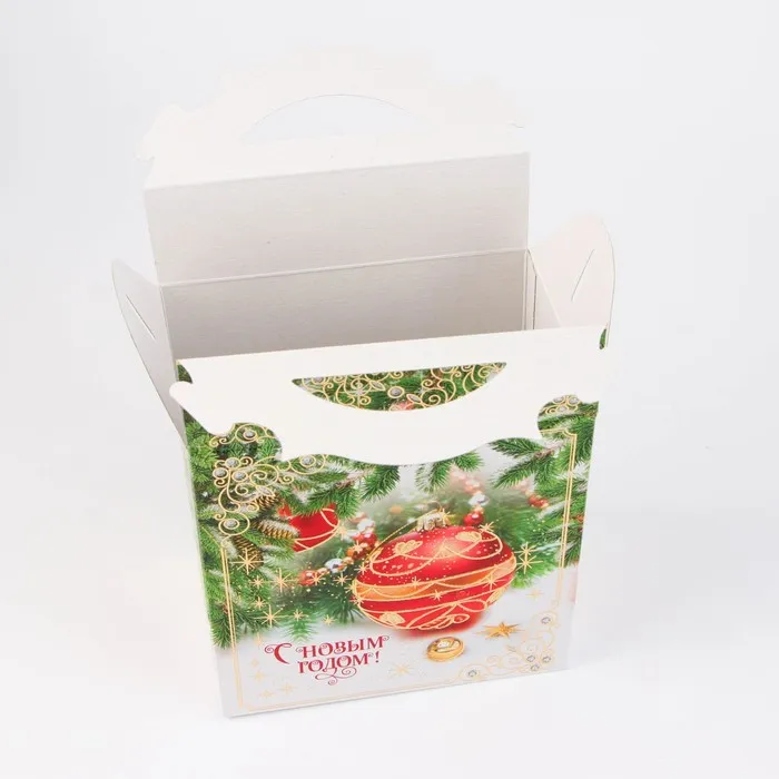 Коробка выполнена из качественных материалов, которые обеспечивают сохранность содержимого. Она имеет яркий и красочный дизайн, который отражает атмосферу Нового года.