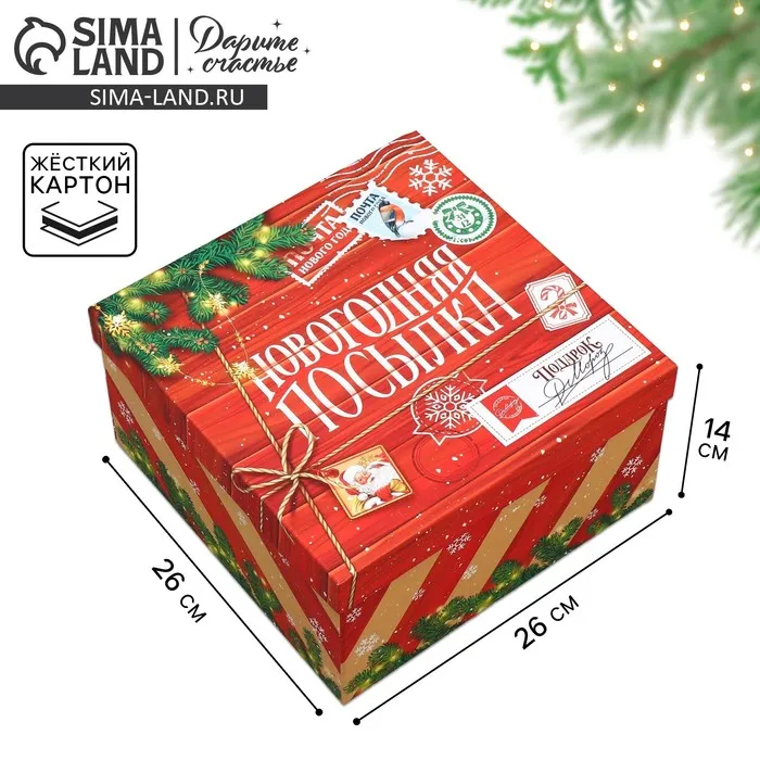 Коробка подарочная «Новогодняя посылка», 26.2 х 26.2 х 14 см — Характеристики