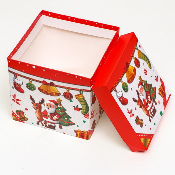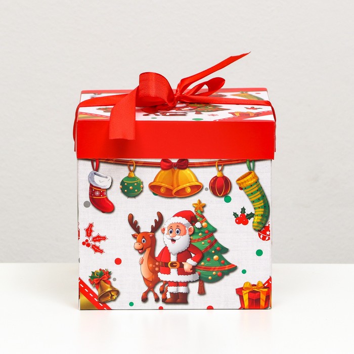 Коробка подарочная новогодняя самосборная «Дед мороз и Ёлка» 15×15×15 см — Характеристики