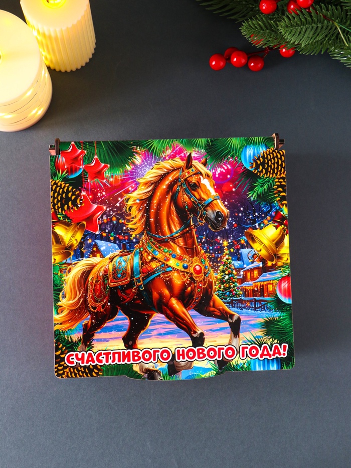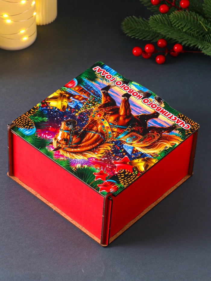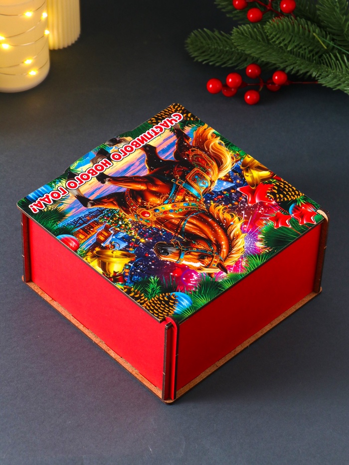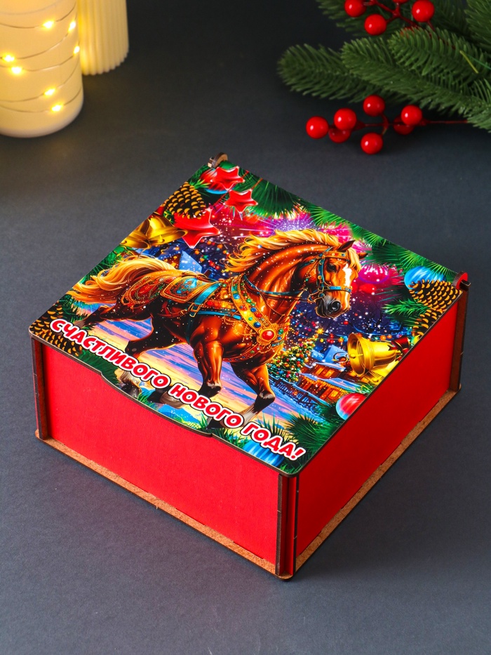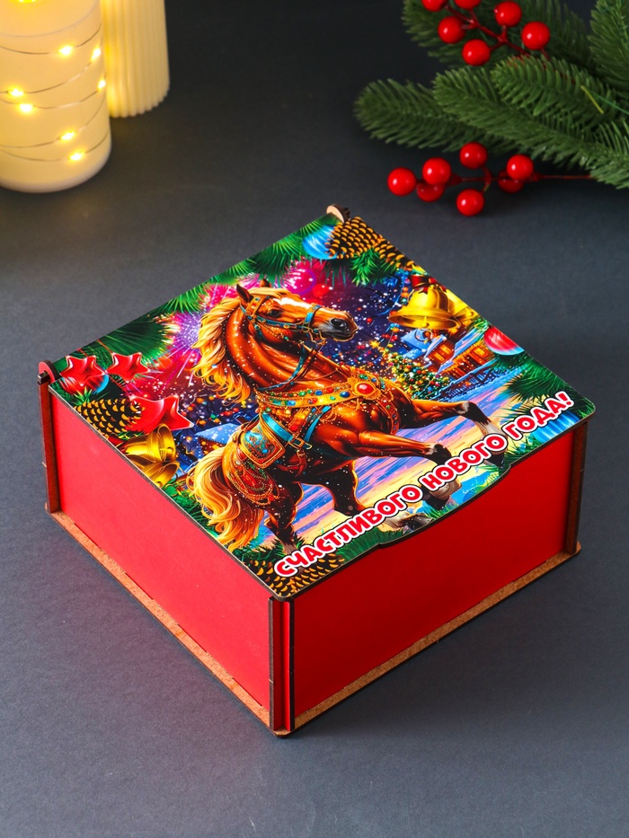 Коробка подарочная новогодняя «Шкатулка с конём. Счастливого Новго года», 18×18×9.5 см — Характеристики