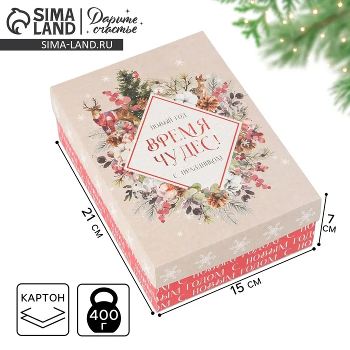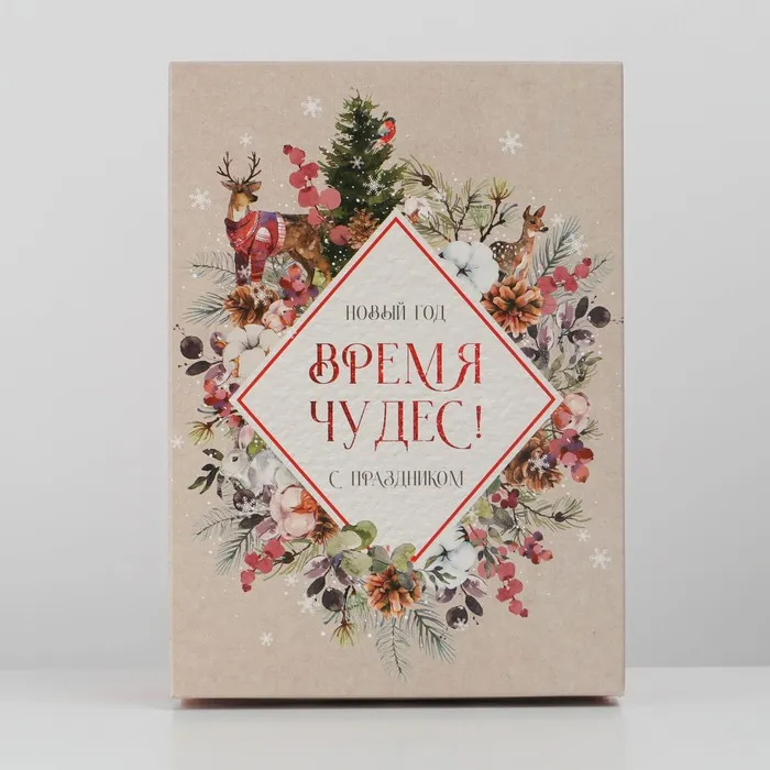 Коробка подарочная новогодняя складная «Акварель новогодняя», 21 х 15 х 7 см, Новый год — Характеристики