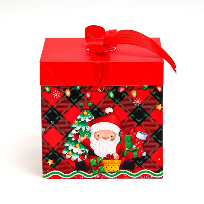 Самосборная новогодняя коробка 15х15х15 см — это практичный и стильный вариант для упаковки подарков.
