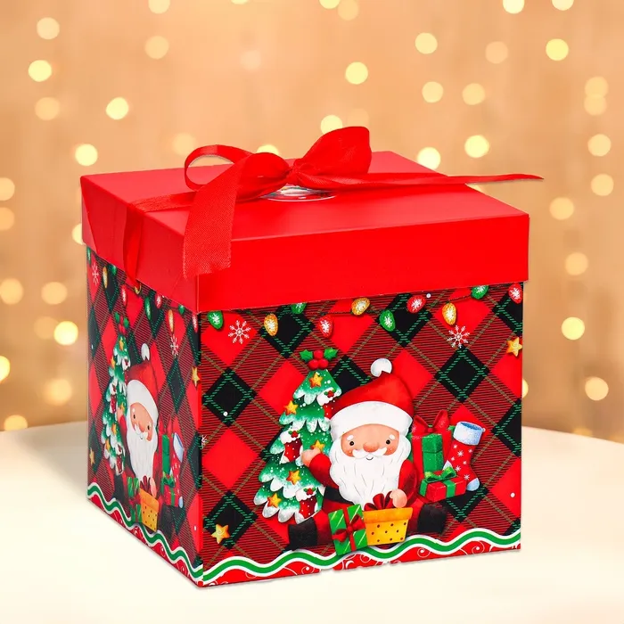 Самосборная новогодняя коробка 15х15х15 см — это практичный и стильный вариант для упаковки подарков.