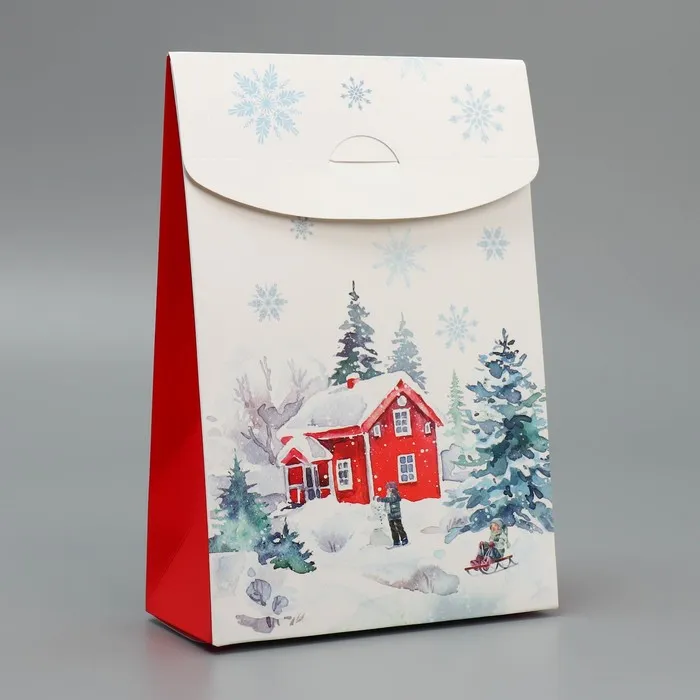 Коробка подарочная новогодняя складная «Дом в зимнем лесу», 15 х 7 х 22 см — Характеристики