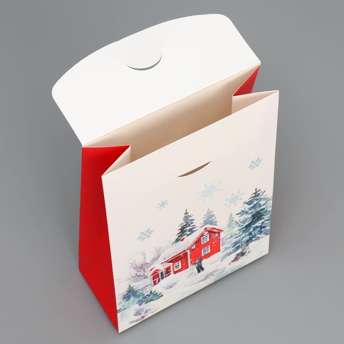 Коробка подарочная новогодняя складная «Дом в зимнем лесу», 15 х 7 х 22 см