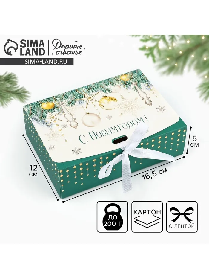 Коробка подарочная новогодняя складная двухсторонняя «Новогодние шары», 16.5 х 12 х 5 см — Характеристики