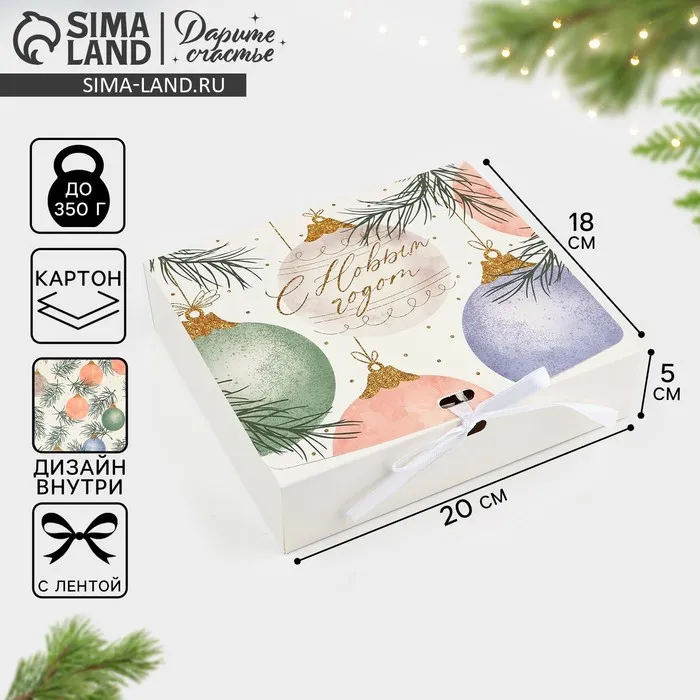 Коробка подарочная новогодняя складная двухсторонняя «Новогодние шары», 20 х 18 х 5 см, Новый год — Характеристики