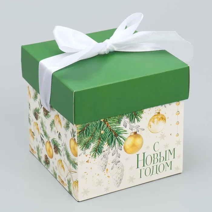 Коробка подарочная новогодняя складная «Фотографичные шары», 10 х 10х 10 см — Характеристики