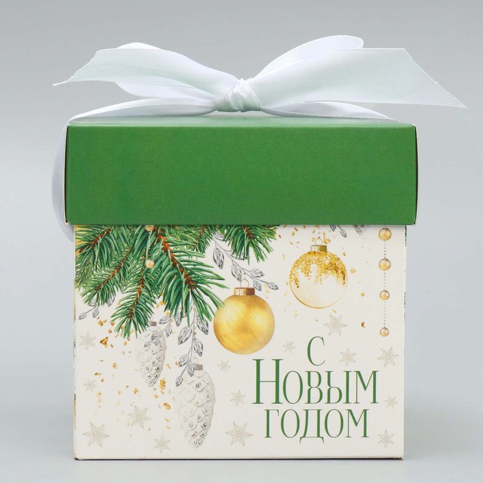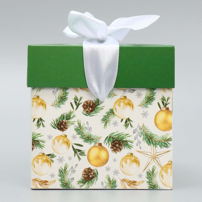 Коробка подарочная новогодняя складная «Фотографичные шары», 10 х 10х 10 см