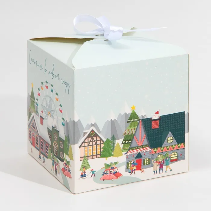 Коробка подарочная новогодняя складная «Город новогодний», 12 х 12 х 12 см, Новый год — Характеристики