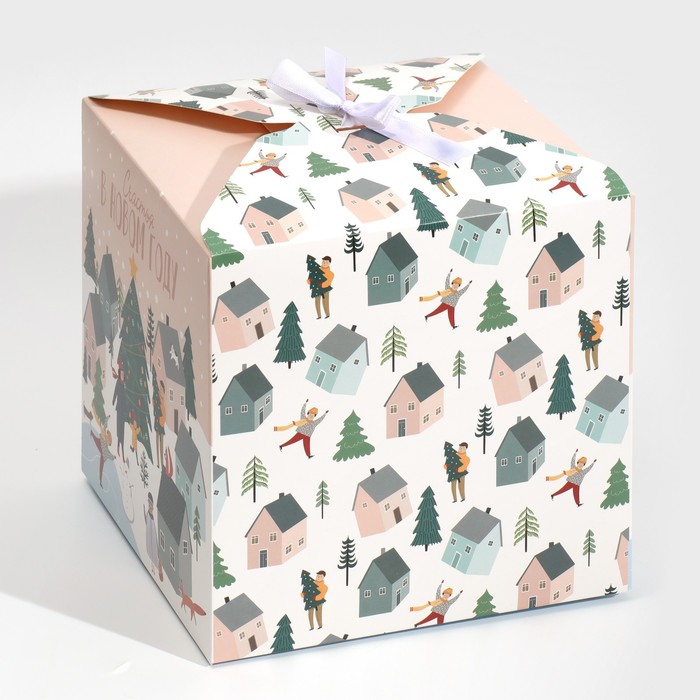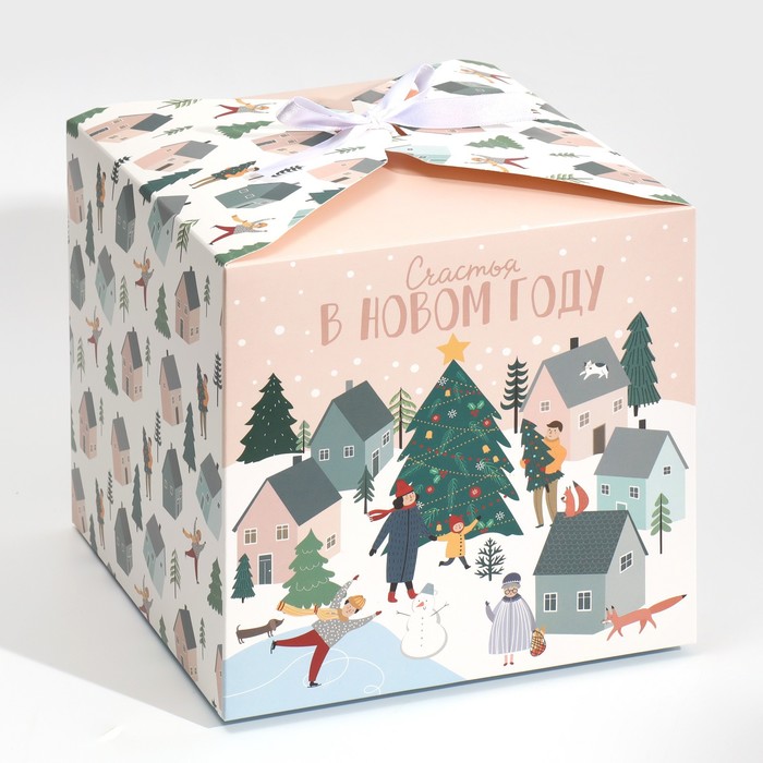Коробка подарочная новогодняя складная «Город новогодний», 18 х 18 х 18 см, Новый год — Характеристики