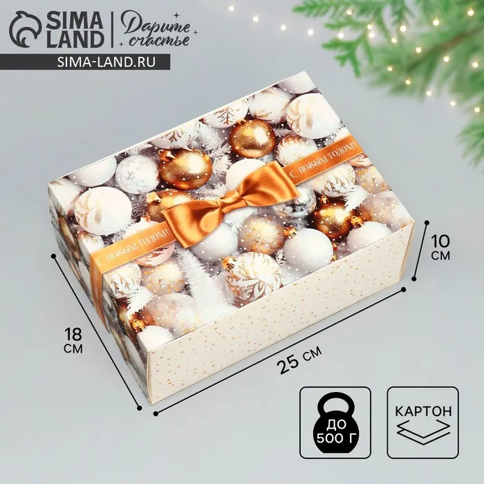 Коробка подарочная новогодняя складная «Яркие шары», 25 х 18 х 10 см — Характеристики