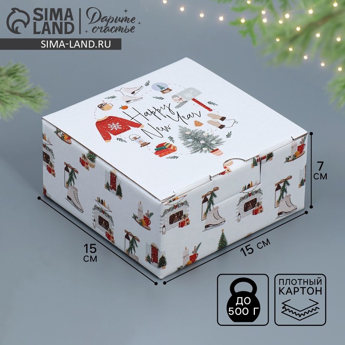Коробка подарочная новогодняя складная «Хюгге», 15 х 15 х 7 см, Новый год — Характеристики