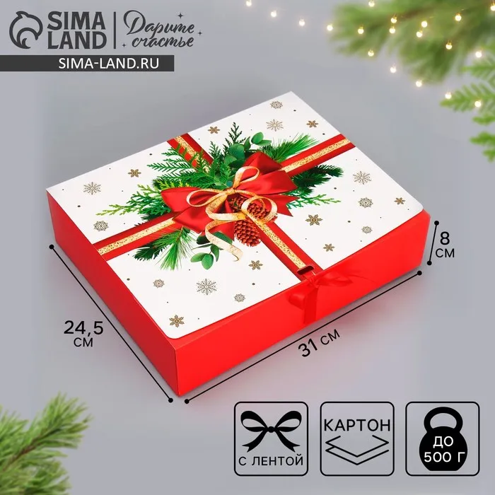 Коробка подарочная новогодняя складная «Красный бант», 31 х 24.5 х 8 см — Характеристики