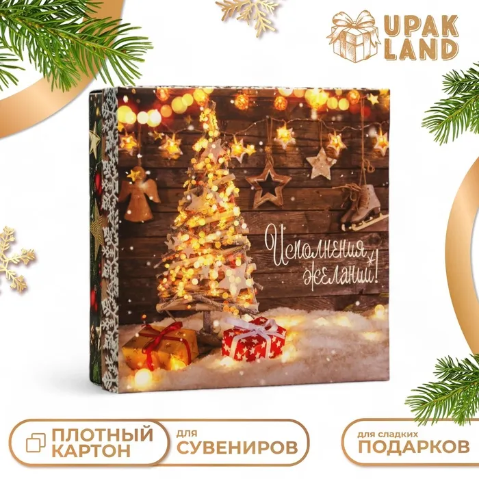 Коробка подарочная новогодняя складная, крышка - дно «Исполнение желаний» 20×20×6 см — Характеристики