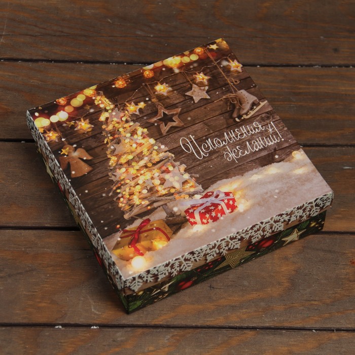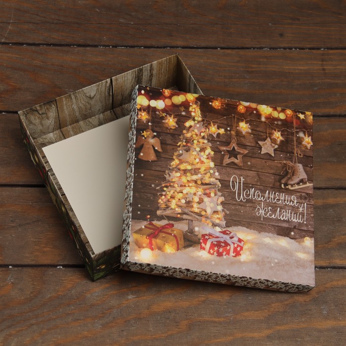 Коробка подарочная новогодняя складная, крышка - дно «Исполнение желаний» 20×20×6 см — Характеристики