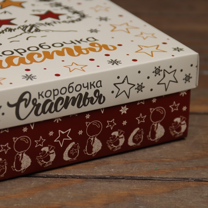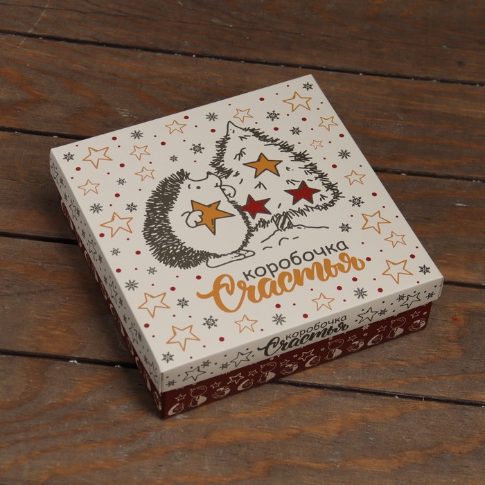 Коробка подарочная новогодняя складная, крышка-дно «Коробочка счастья» 20×20×6 см — Характеристики