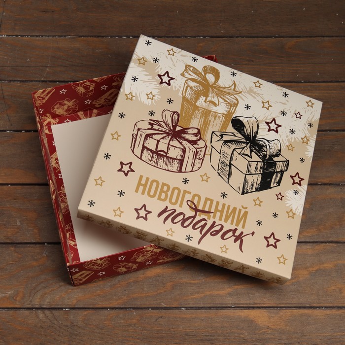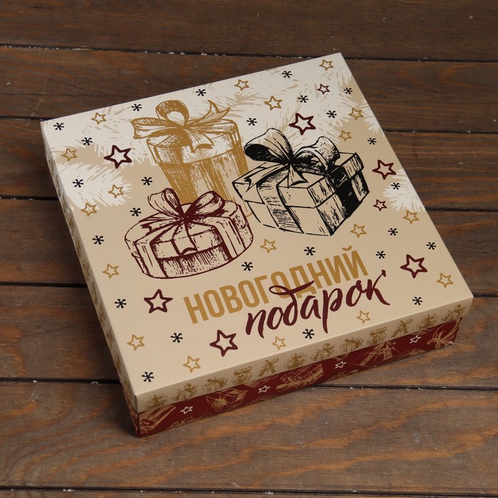 Коробка подарочная новогодняя складная, крышка - дно «Новогодний Подарок» 30×30×8 см — Характеристики