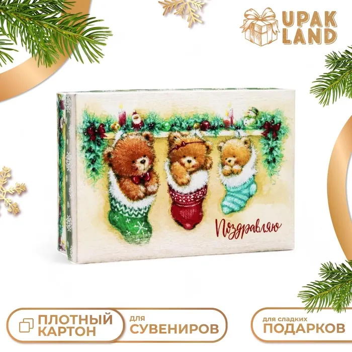 Коробка подарочная новогодняя складная, крышка - дно «Поздравляю с Новым Годом» 24×17×8 см — Характеристики