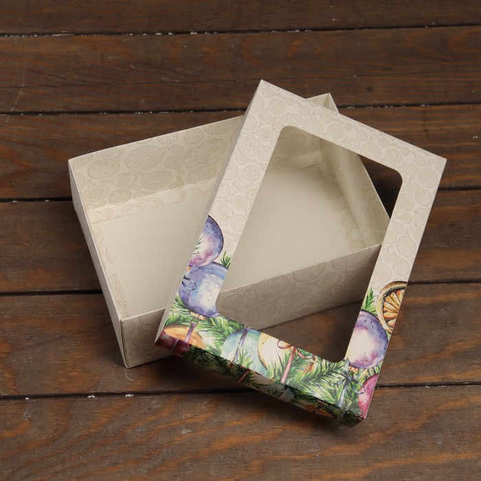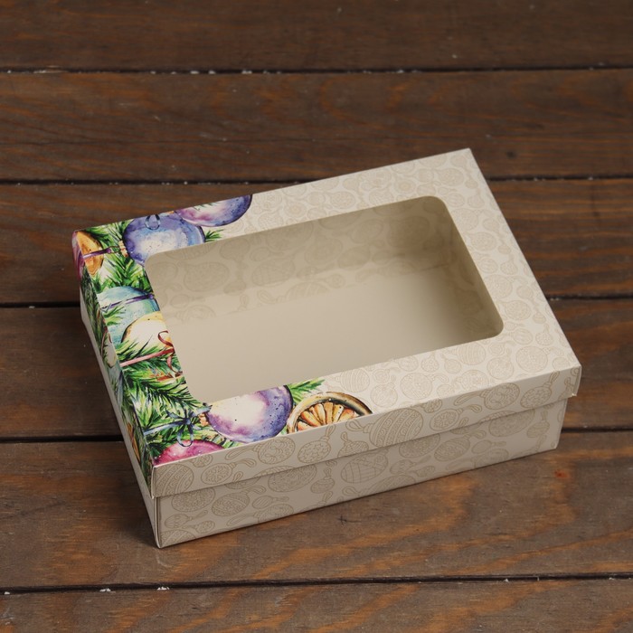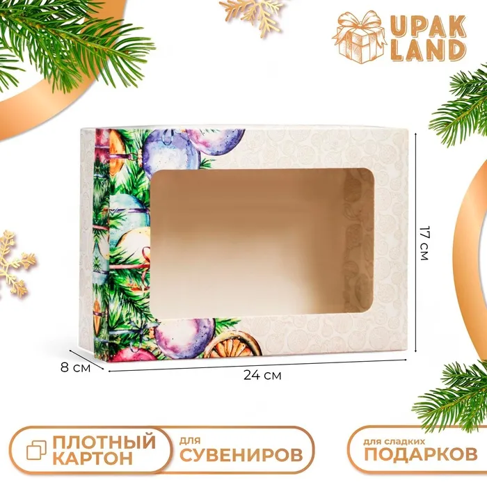 Коробка подарочная новогодняя складная, крышка - дно, с окном «Новогоднее украшение» 24×17×8 см — Характеристики