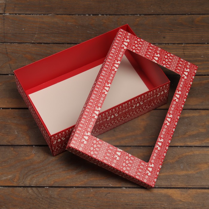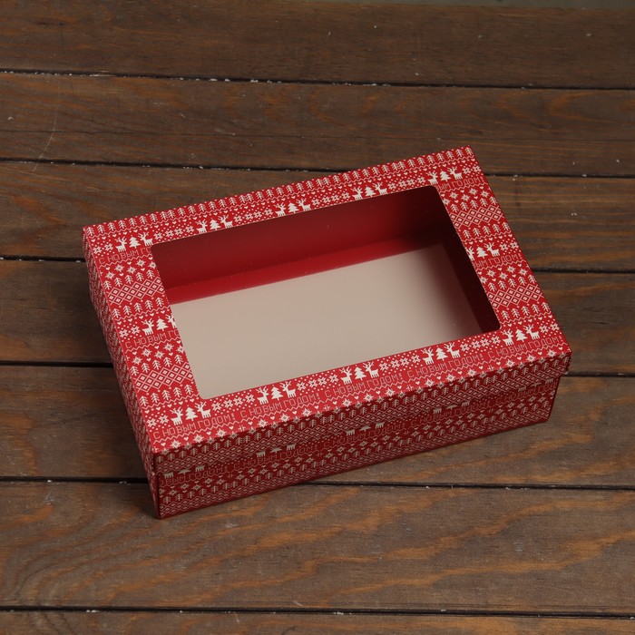 Коробка подарочная новогодняя складная, крышка - дно, с окном «Новогодняя атмосфера» 30×20×9 см — Характеристики